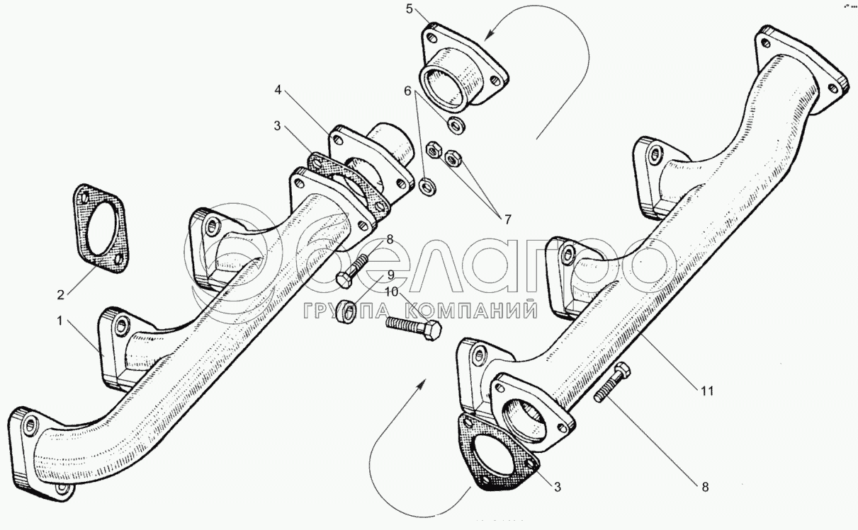 Каталог запасных частей к технике: ЯМЗ-240. Газопровод ЯМЗ-240М2,ЯМЗ-240М2
