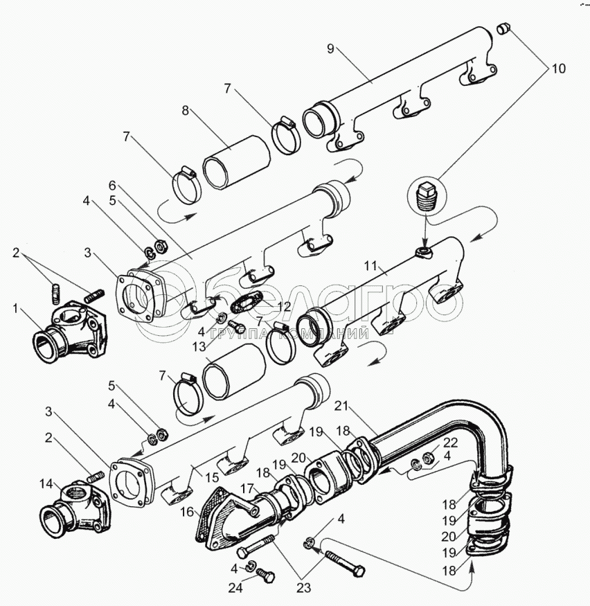 Каталог запасных частей к технике: ЯМЗ-240. Трубопроводы системы охлаждения ЯМЗ-240БМ2
