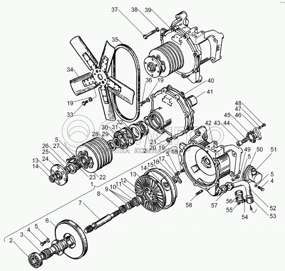 Каталог запасных частей к технике: ЯМЗ-240. Вентилятор и гидромуфта привода ЯМЗ-240БМ2
