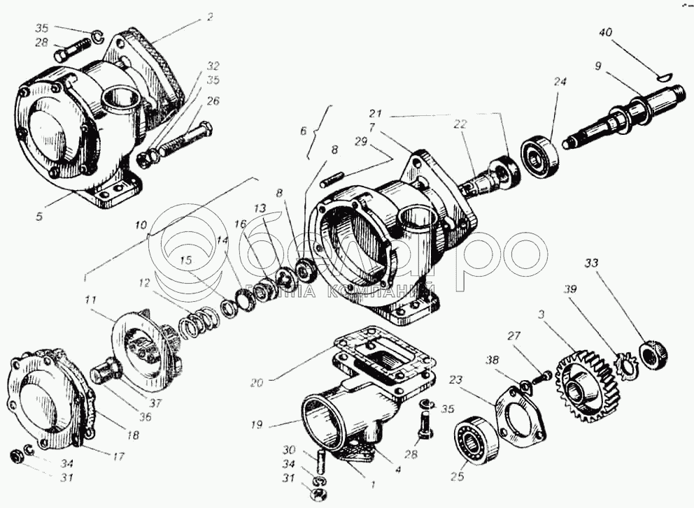 Каталог запасных частей к технике: ЯМЗ-240, 240Б, 240Н, 240П. Насос водяной