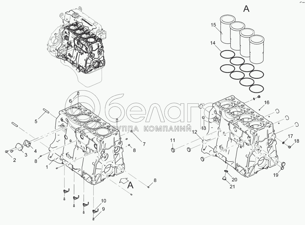 Каталог запасных частей к технике: ЯМЗ-53402. Блок цилиндров