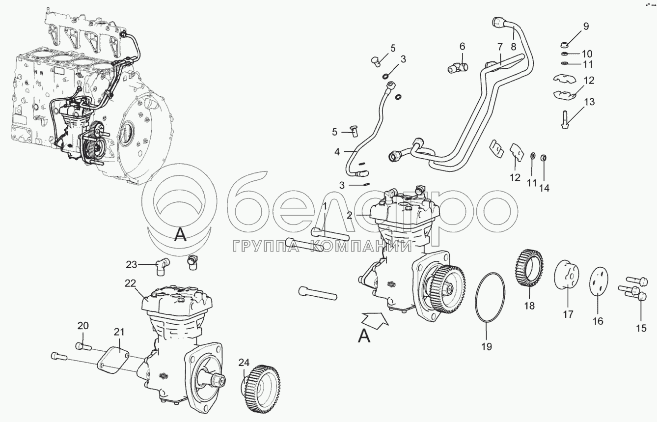 Каталог запасных частей к технике: ЯМЗ-53402. Компрессор пневматического тормоза