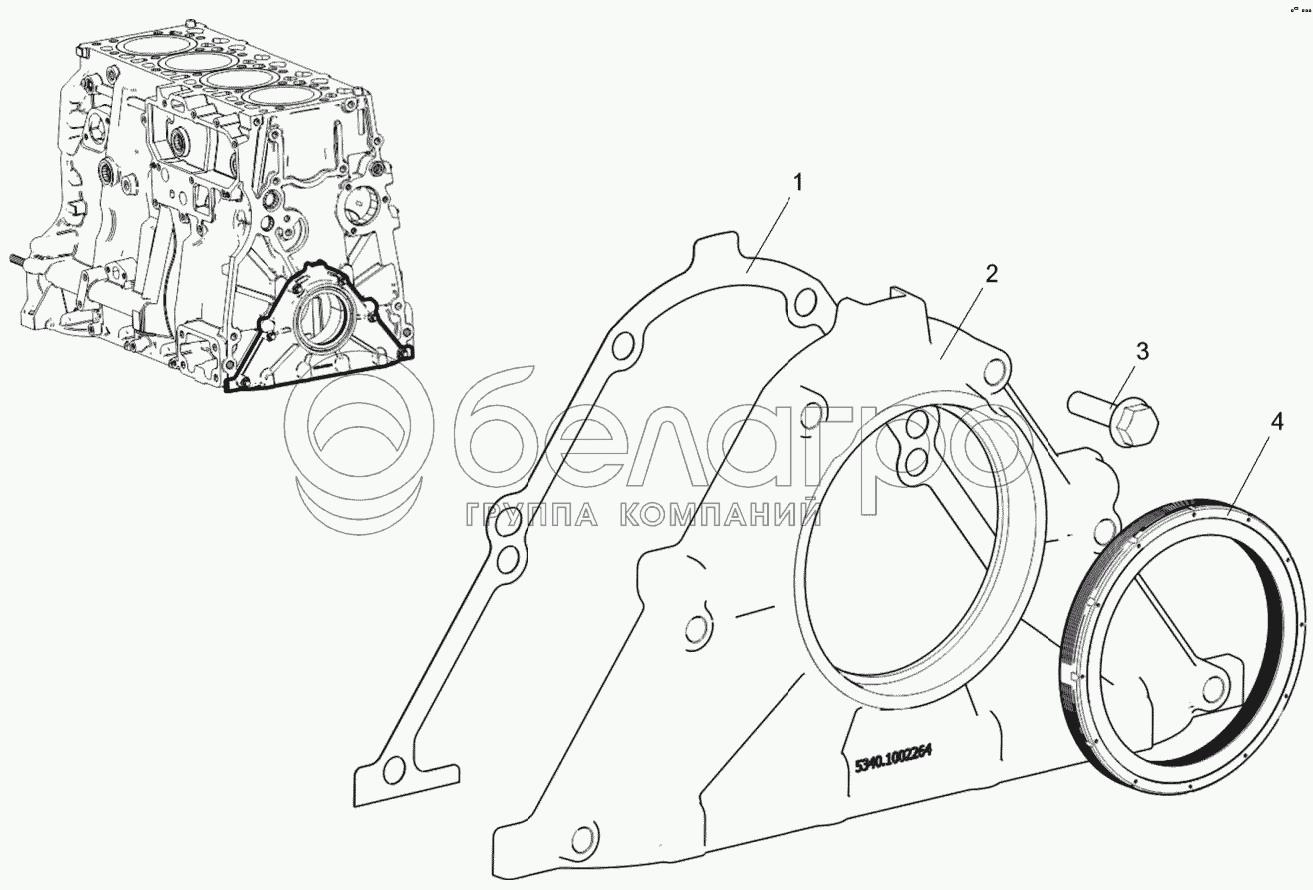 Каталог запасных частей к технике: ЯМЗ-53402. Крышка блока передняя