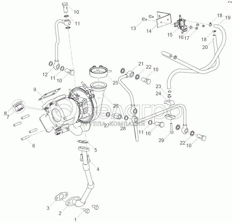 Каталог запасных частей к технике: ЯМЗ-53414. Установка турбокомпрессора 53404.1118005