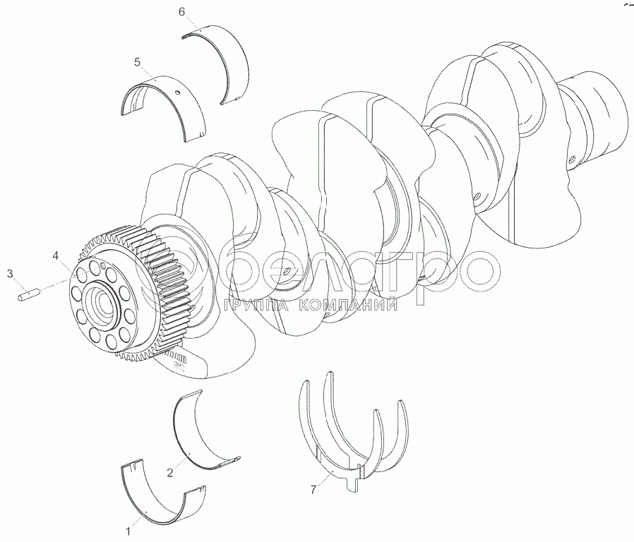Каталог запасных частей к технике: ЯМЗ-53424. Установка коленчатого вала 5340.1005005