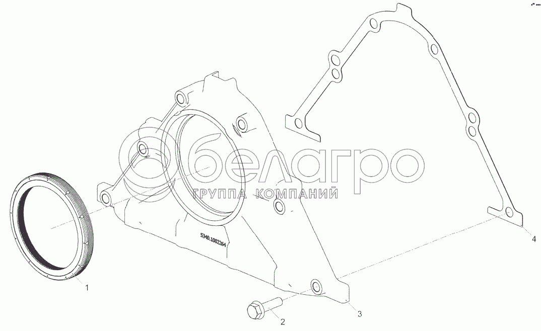 Каталог запасных частей к технике: ЯМЗ-53424. Установка крышки передней 5340.1002249