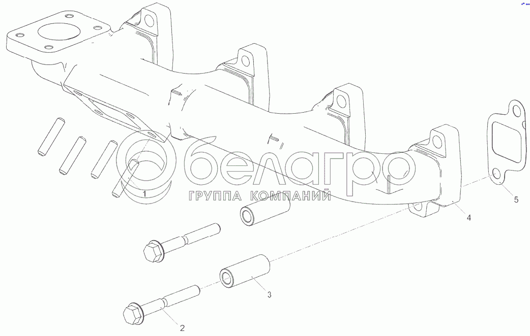 Каталог запасных частей к технике: ЯМЗ-53424. Установка выпускного коллектора 5340.1008005