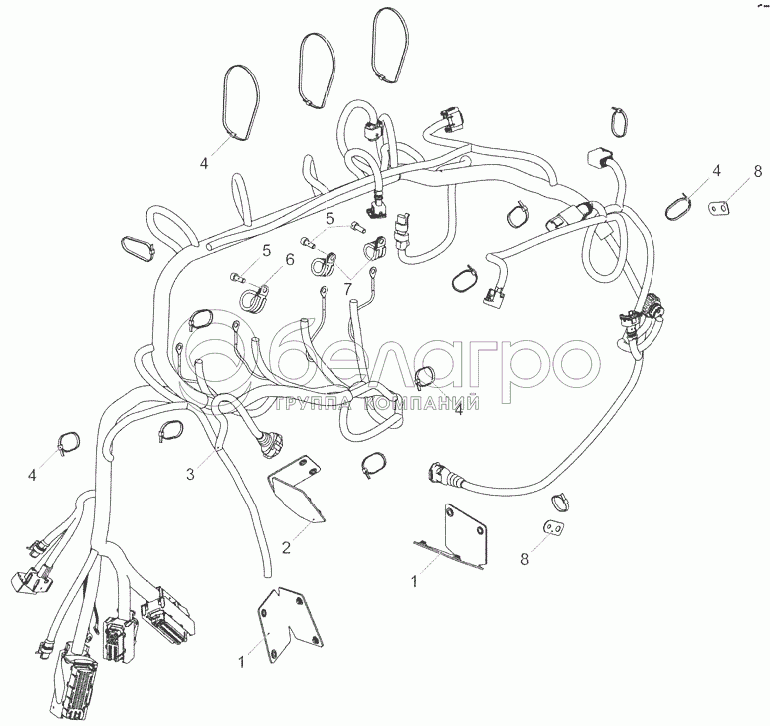 Каталог запасных частей к технике: ЯМЗ-53424. Установка жгута двигателя 53414.3724011