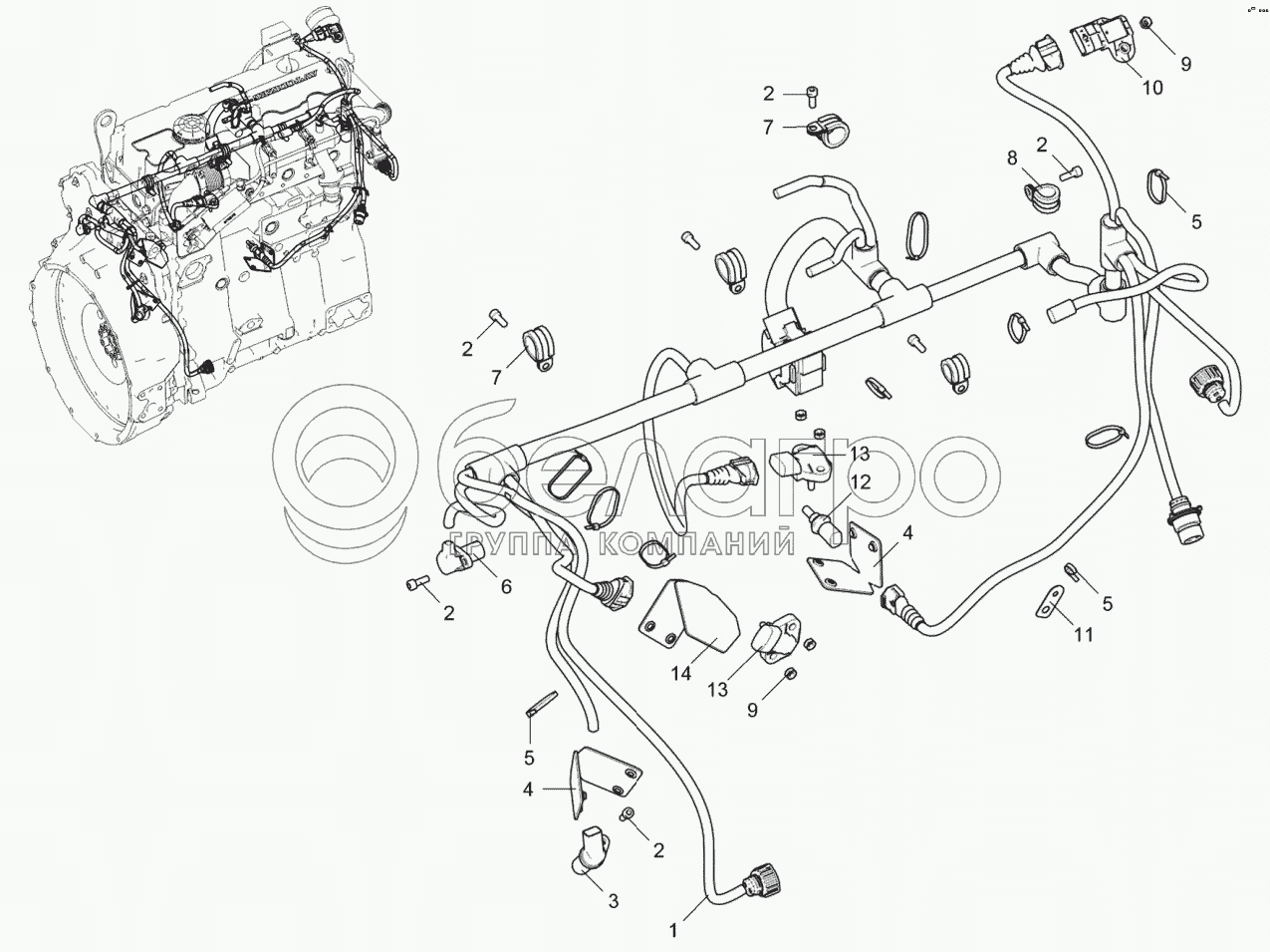 Каталог запасных частей к технике: ЯМЗ-5344-10, 53442. Жгут датчиков 5344-30-372400-020