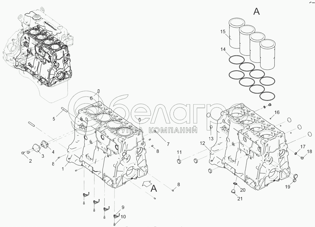 Каталог запасных частей к технике: ЯМЗ-5347-10, 53472. Блок цилиндров