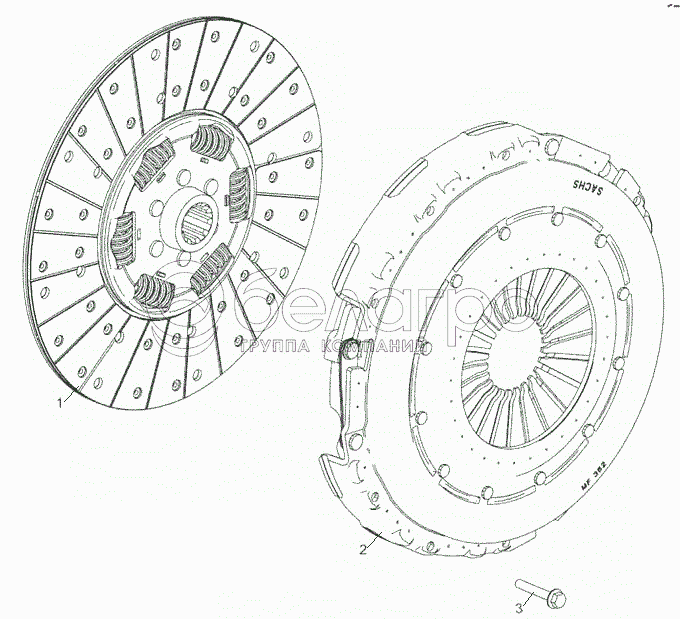 Каталог запасных частей к технике: ЯМЗ-534. 36241.1600010 Установка сцепления