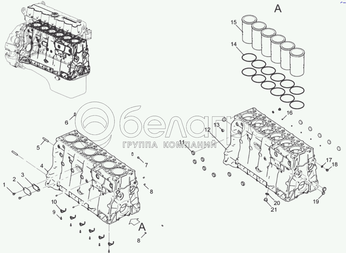 Каталог запасных частей к технике: ЯМЗ-536-100. Блок цилиндров