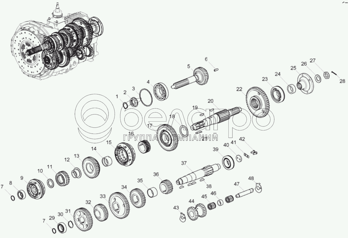 Каталог запасных частей к технике: ЯМЗ-536-100. Валы и шестерни коробки передач