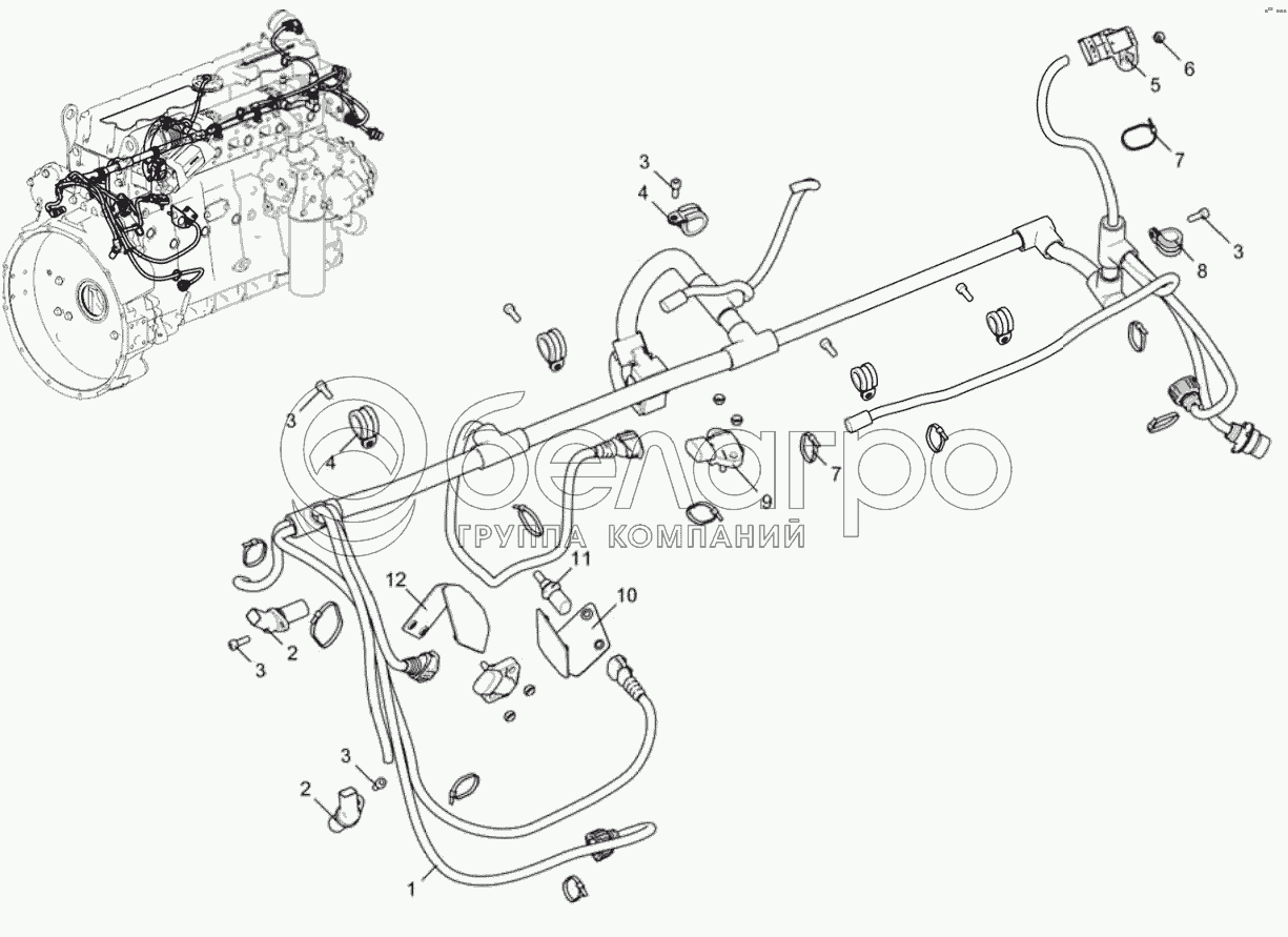 Каталог запасных частей к технике: ЯМЗ-536-100. Жгут датчиков (Двигатель ЯМЗ-536-10)