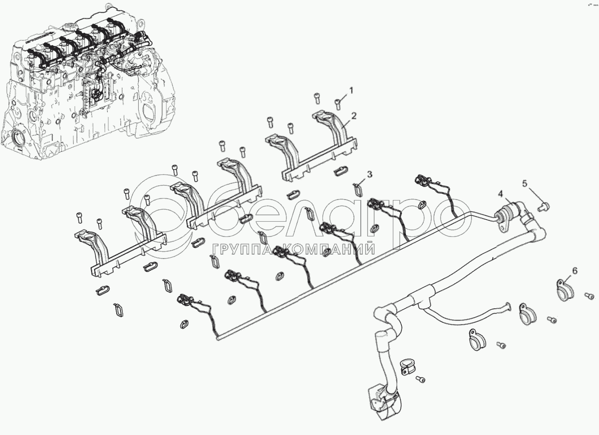 Каталог запасных частей к технике: ЯМЗ-536-100. Жгут форсунок