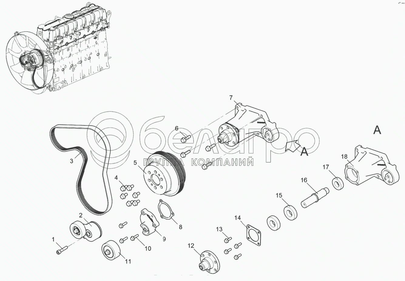 Каталог запасных частей к технике: ЯМЗ-536-10. Привод вентилятора 536-30-130800-020