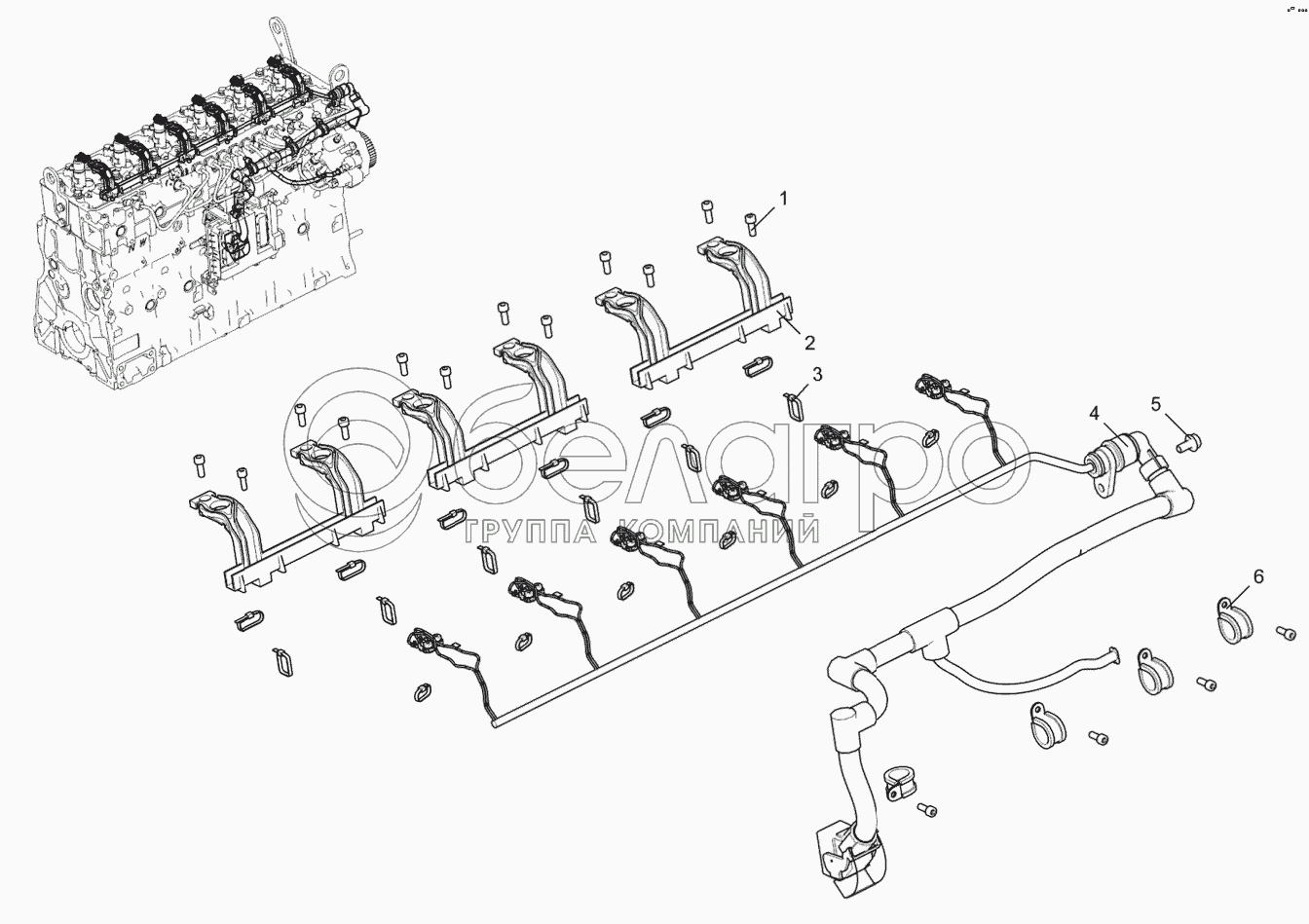 Каталог запасных частей к технике: ЯМЗ-536-10. Жгут форсунок 536-30-372400-010