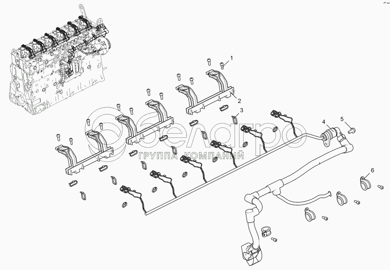Каталог запасных частей к технике: ЯМЗ-536. Жгут форсунок 536-30-372400-010