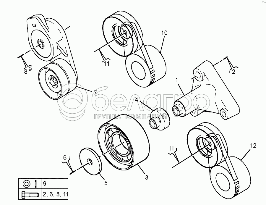 Каталог запасных частей к технике: ЯМЗ-650.10 (Евро 3-4). Натяжители ремней
