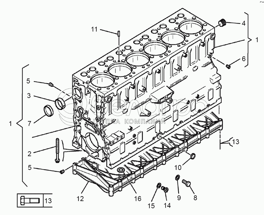Каталог запасных частей к технике: ЯМЗ-650.10 (Евро 3). Блок цилиндров
