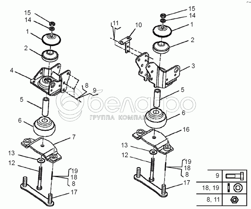 Каталог запасных частей к технике: ЯМЗ-650.10 (Евро 3). Подвеска двигателя передняя