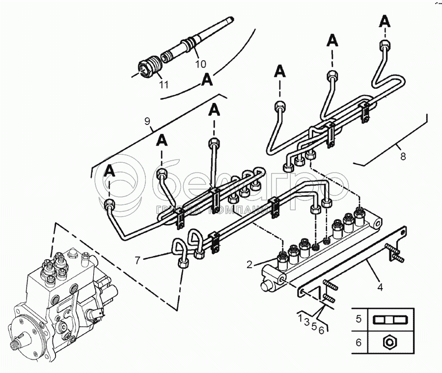 Каталог запасных частей к технике: ЯМЗ-650.10 (Евро 3). Топливные трубопроводы высокого давления