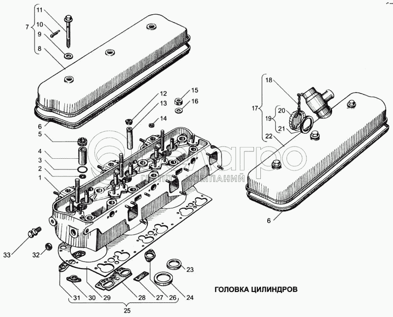 Каталог запасных частей к технике: ЯМЗ-6561.10 (Евро 3). Головка цилиндров