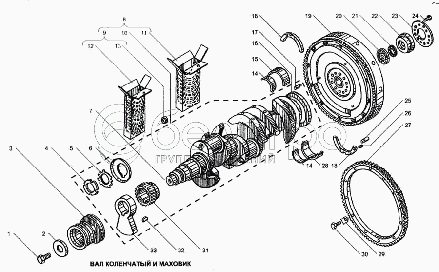 Вал коленчатый с шестерней и маслоотражателями в сборе