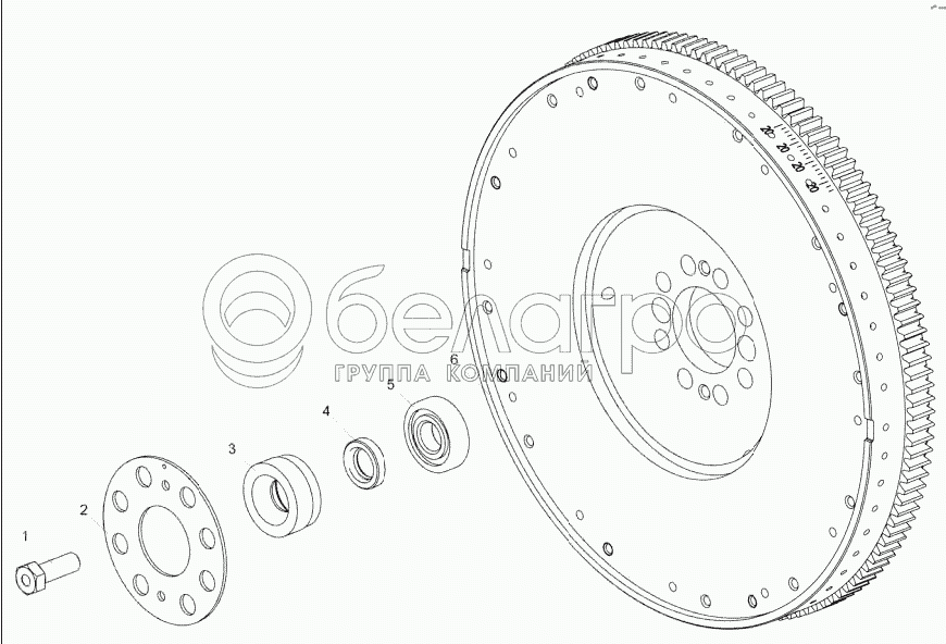 Каталог запасных частей к технике: ЯМЗ-65652 (65654) (Евро 4). 6565.1005114 Установка маховика