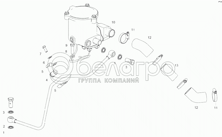 6565.1014196 Маслоотделитель с патрубком и кронштейном