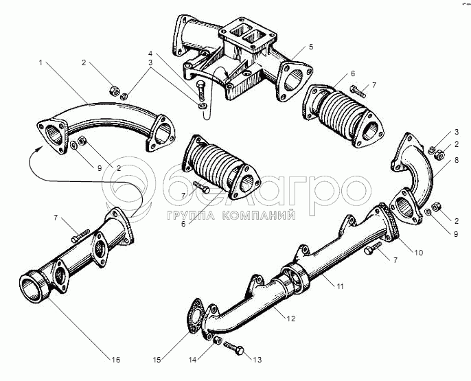 Каталог запасных частей к технике: ЯМЗ-6581.10, 6582.10 (Евро 3). Коллекторы выпускные