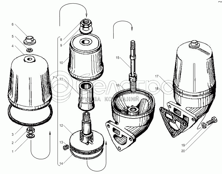 Каталог запасных частей к технике: ЯМЗ-6581.10, 6582.10 (Евро 3). Маслоочиститель центробежный