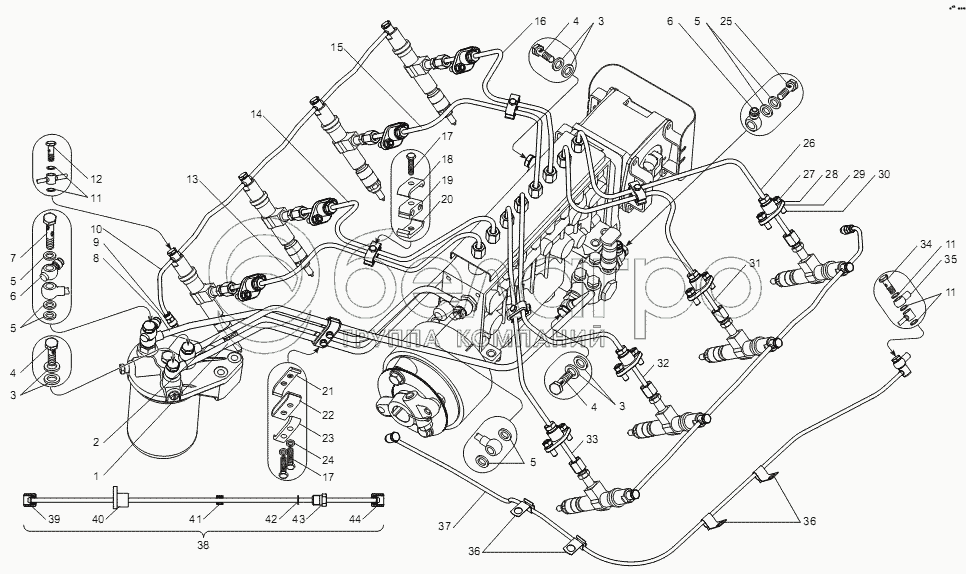 Каталог запасных частей к технике: ЯМЗ-6581.10, 6582.10 (Евро 3). Трубопроводы топливные