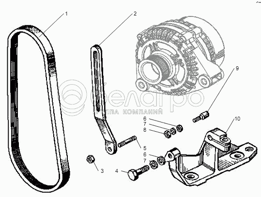 Каталог запасных частей к технике: ЯМЗ-6581.10, 6582.10 (Евро 3). Установка генератора