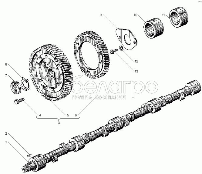 Каталог запасных частей к технике: ЯМЗ-6581.10, 6582.10 (Евро 3). Вал распределительный