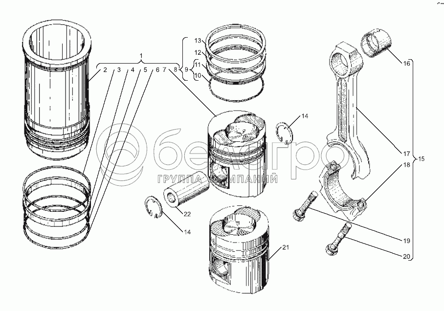 Каталог запасных частей к технике: ЯМЗ-6581.10 (Евро 3). Поршень и шатун