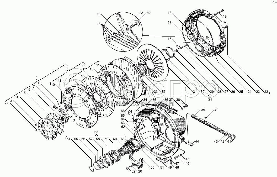 Каталог запасных частей к технике: ЯМЗ-6581.10 (Евро 3). Сцепление ЯМЗ-184-15