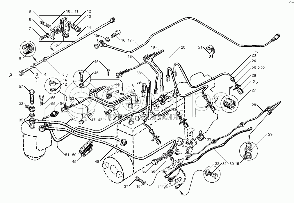 Каталог запасных частей к технике: ЯМЗ-6581.10 (Евро 3). Трубопроводы топливные