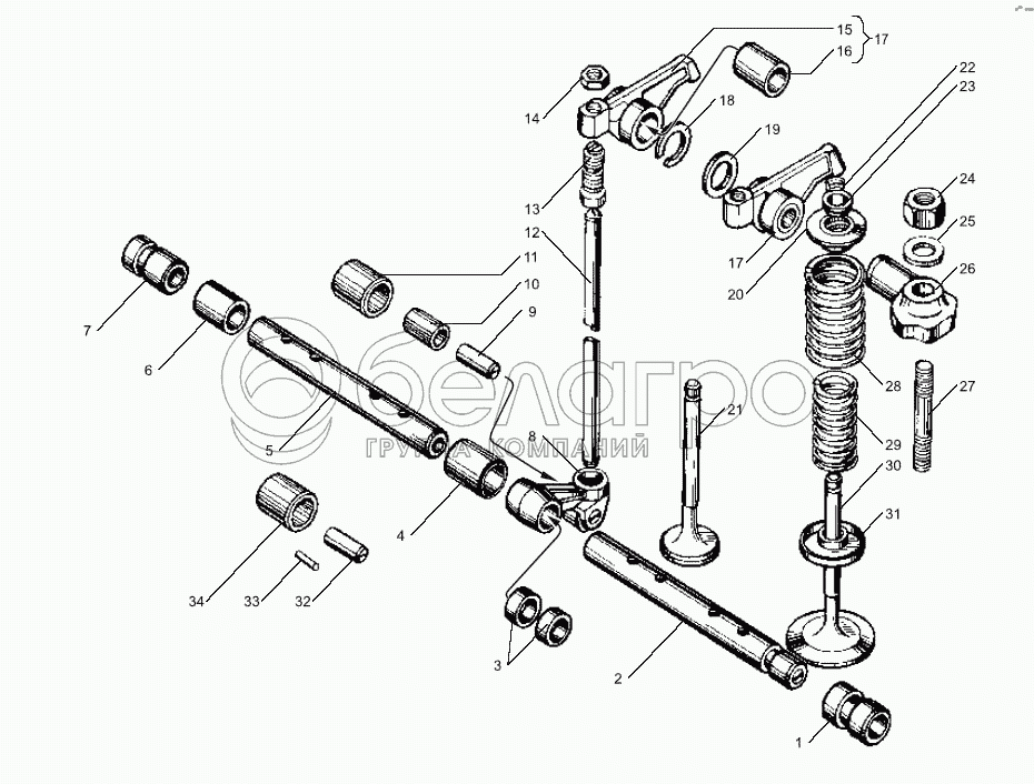 Каталог запасных частей к технике: ЯМЗ-6582.10 (Евро 3). Клапаны и толкатели