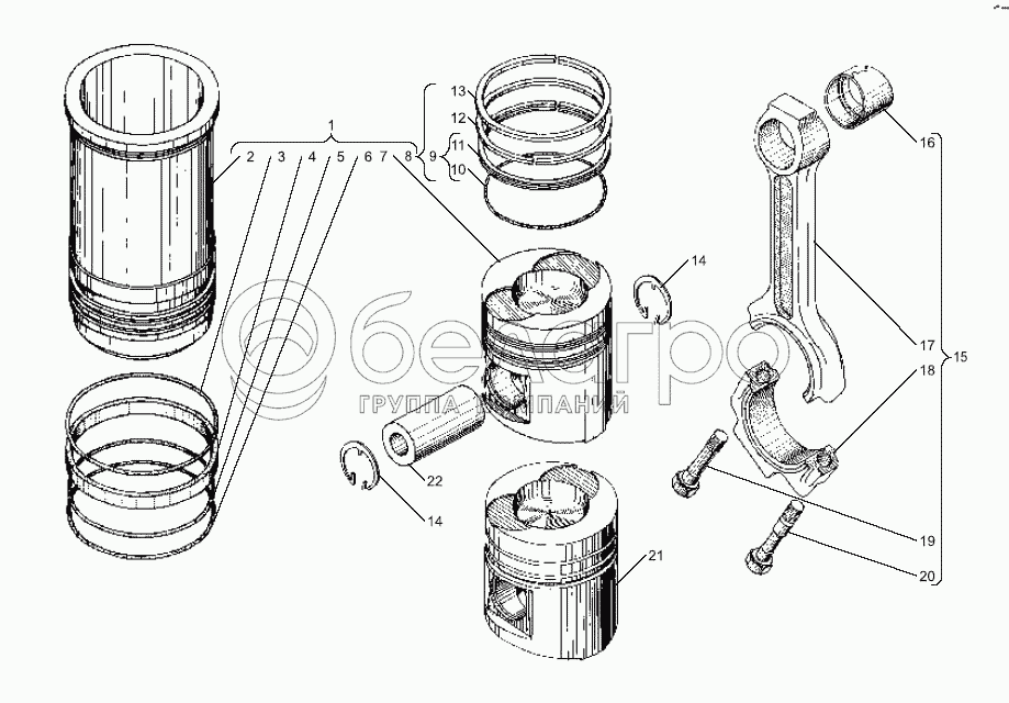 Каталог запасных частей к технике: ЯМЗ-6582.10 (Евро 3). Поршень и шатун