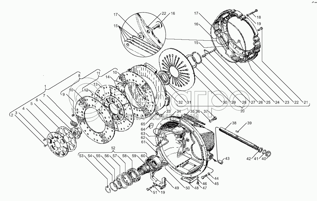Каталог запасных частей к технике: ЯМЗ-6582.10 (Евро 3). Сцепление ЯМЗ-183-15