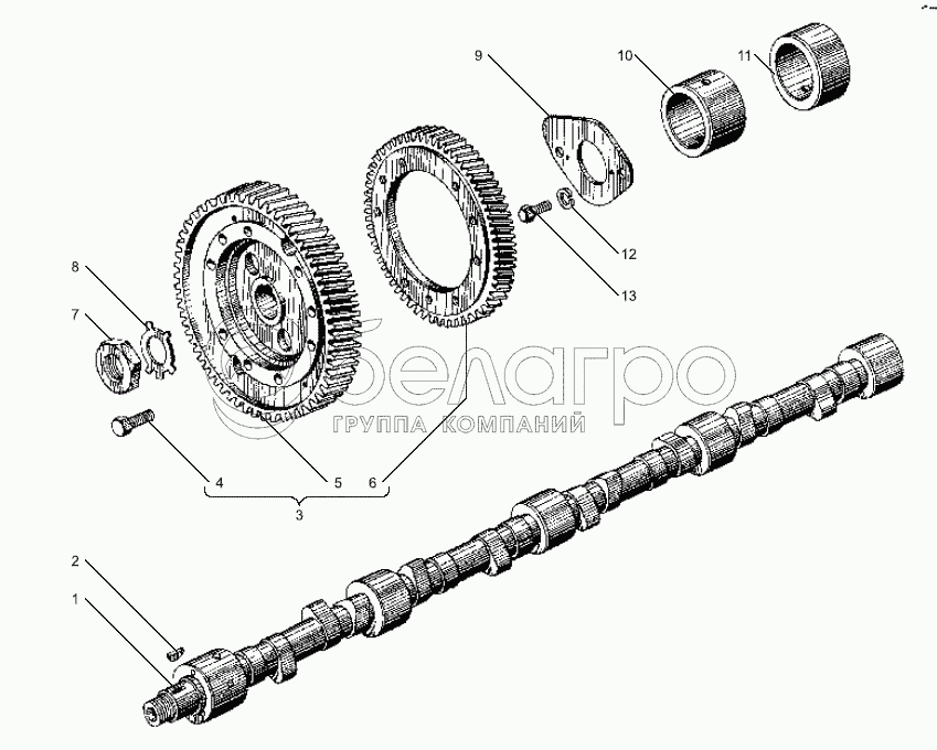 Каталог запасных частей к технике: ЯМЗ-6582.10 (Евро 3). Вал распределительный