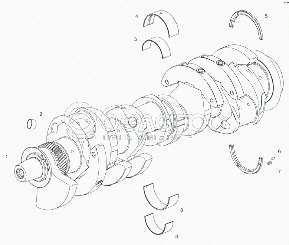 Каталог запасных частей к технике: ЯМЗ-6585 (для МАЗ). 238ДК-10050О8-30 Вал коленчатый