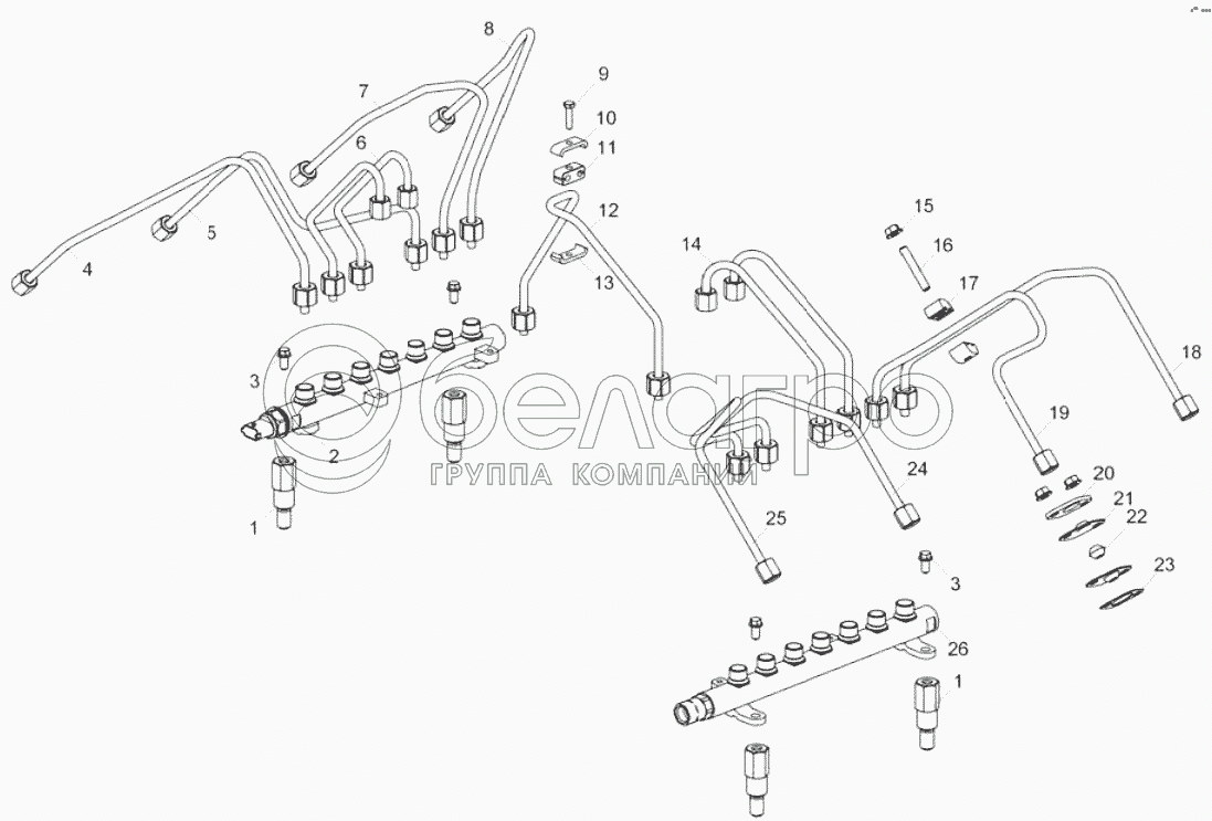 Каталог запасных частей к технике: ЯМЗ-6585 (для МАЗ). 6585.1112006 Установка трубок высокого давления