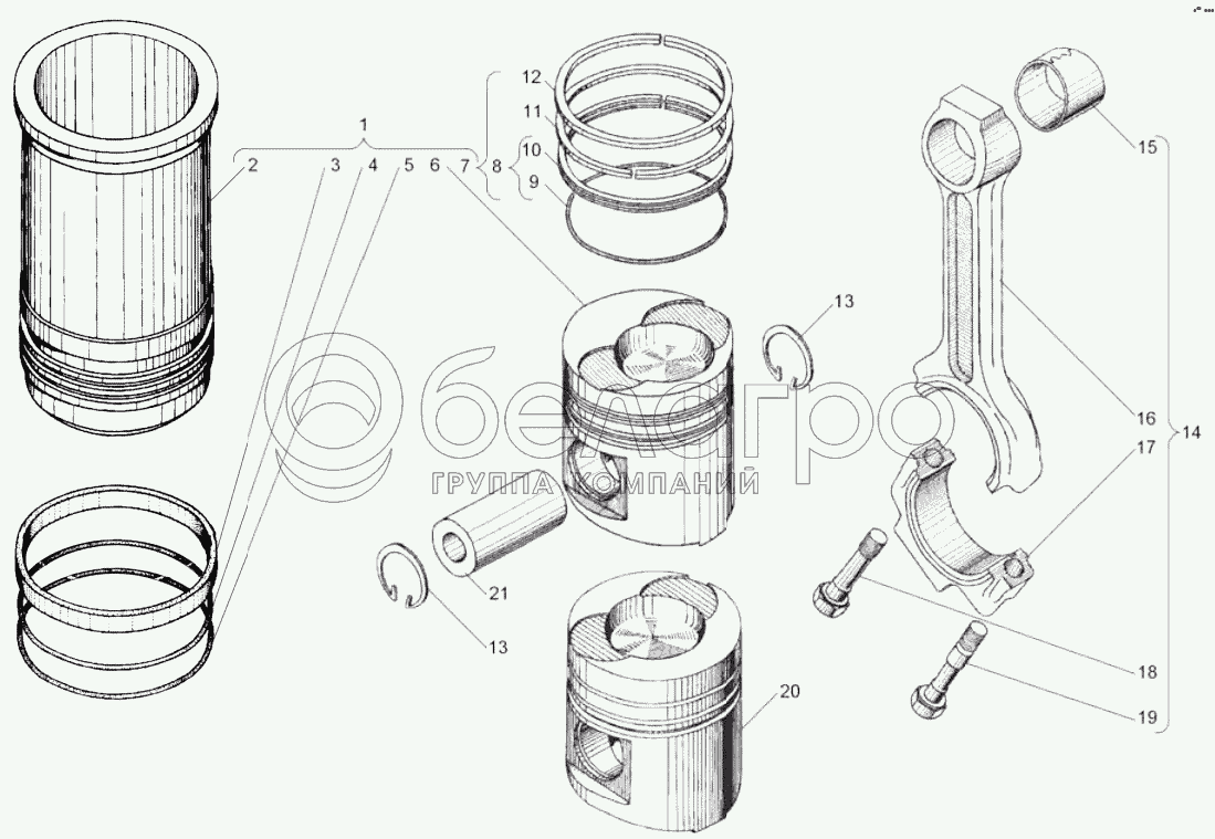 Каталог запасных частей к технике: ЯМЗ-7511.10. Поршень и шатун