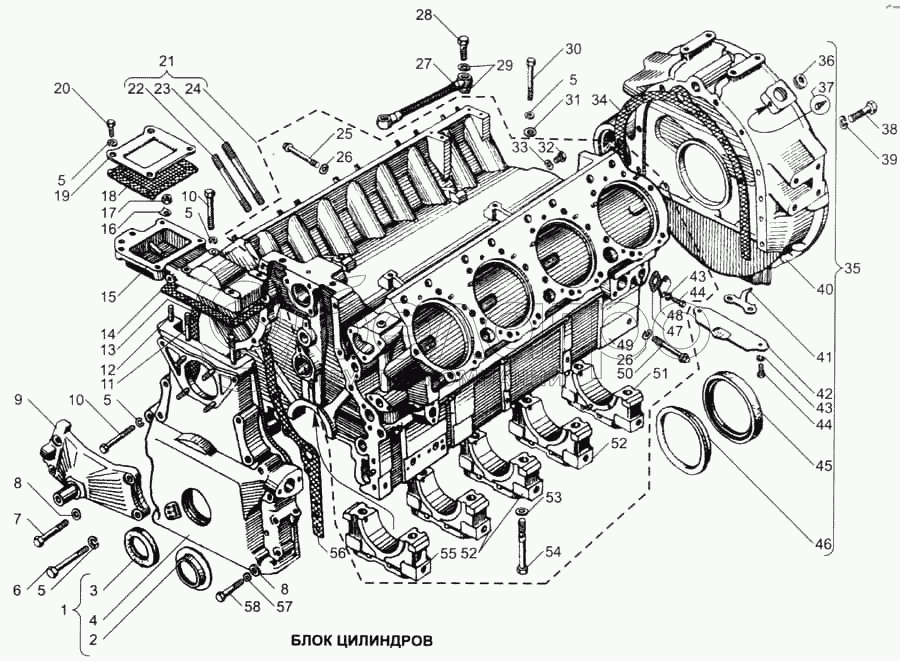 Каталог запасных частей к технике: ЯМЗ-7511. Блок цилиндров