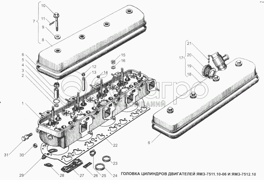 Каталог запасных частей к технике: ЯМЗ-7511. Головка цилиндров 7511.10-06 и 7512.10