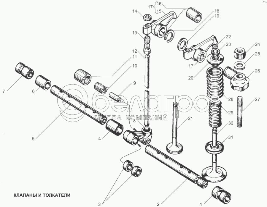 Каталог запасных частей к технике: ЯМЗ-7511. Клапаны и толкатели