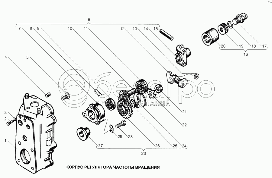 Каталог запасных частей к технике: ЯМЗ-7511. Корпус регулятора частоты вращения