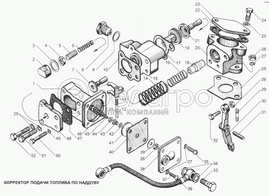 Каталог запасных частей к технике: ЯМЗ-7511. Корректор подачи топлива по наддуву